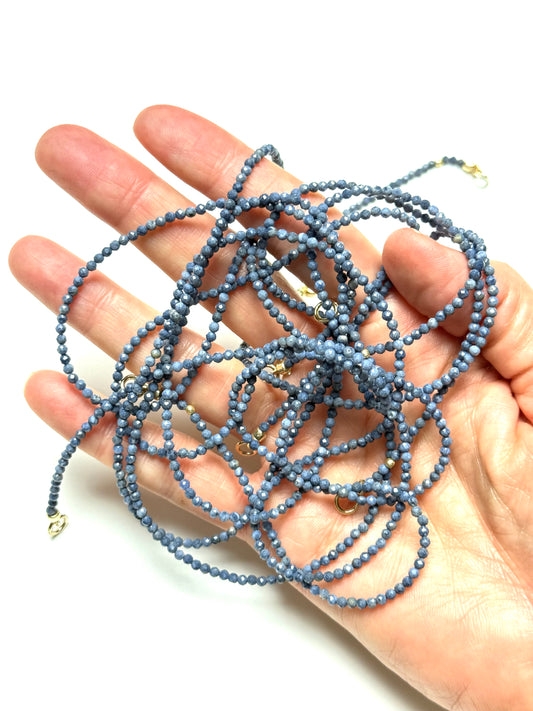 2mm Faceted Smoky Blue Coral Double Bracelet/Extender
