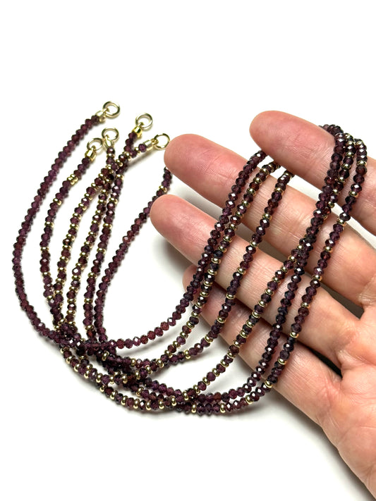 2x3mm Faceted Garnet with Gold Disk Spacers Necklace