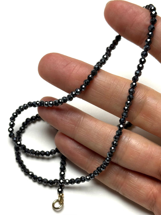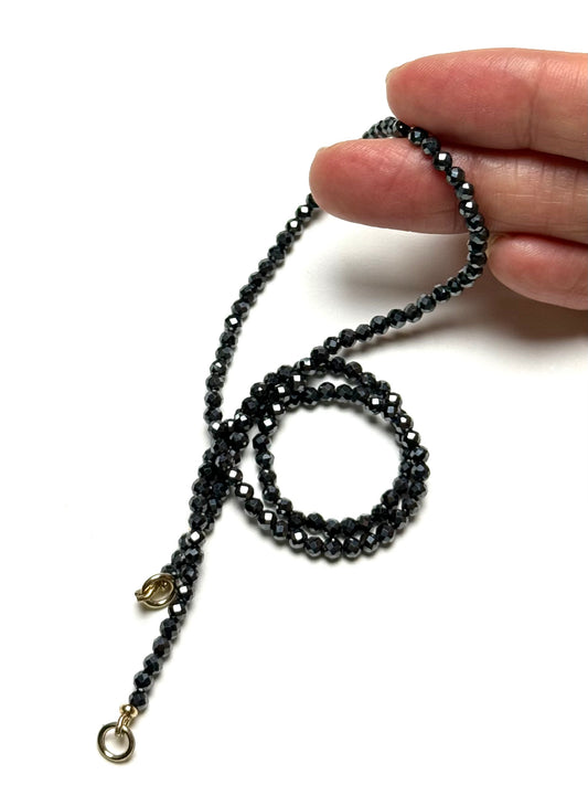 3.5-4mm Faceted Round Silver Black Hematite Necklace