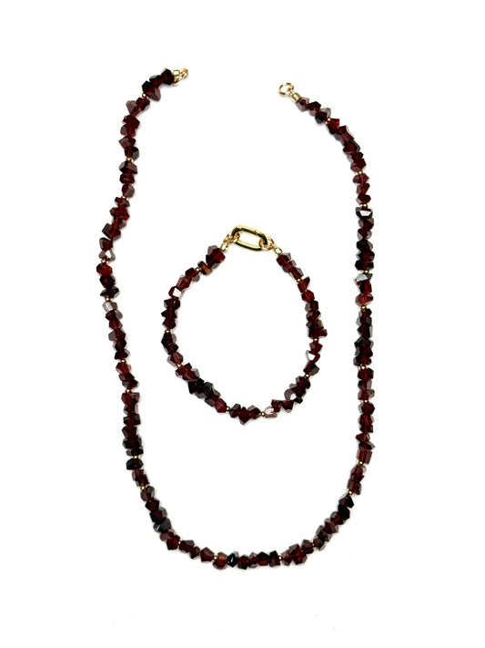 4-7mm Natural Dark Red Faceted Garnet Nugget Necklace