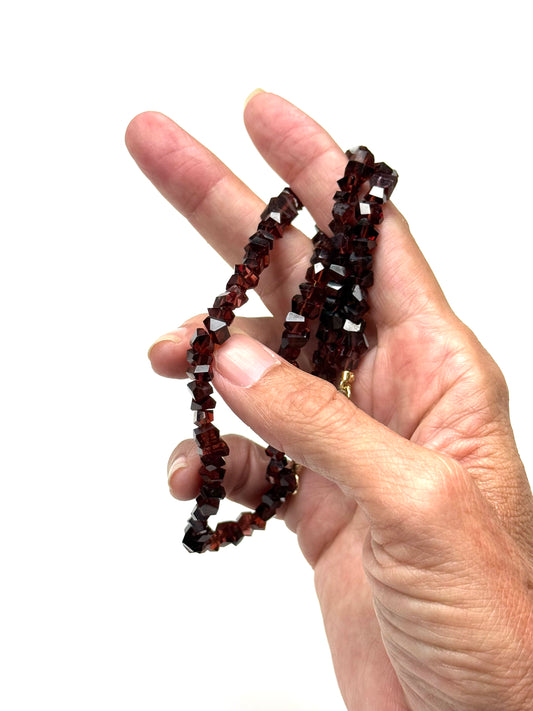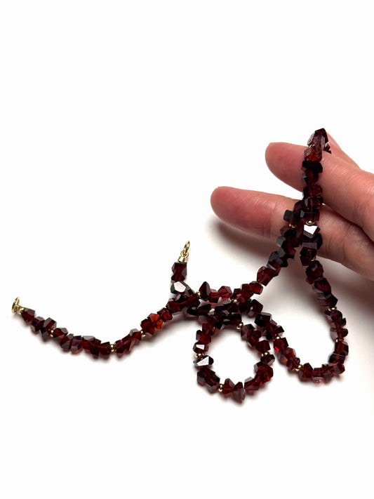 4-7mm Natural Mozambique Garnet Faceted Nugget Necklace