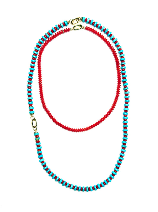 8x2mm Light Turquoise Heishi With Alternating Red Coral Disks Necklace