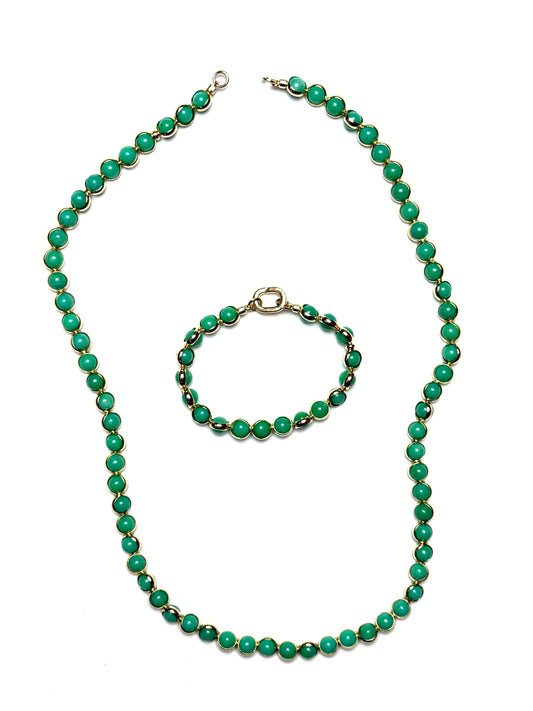 6mm Green Mountain Jade Gold Sleeved Gemstone Necklace