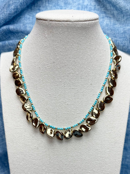 12x15mm 14k Gold Plate Concave "Bean" Necklace