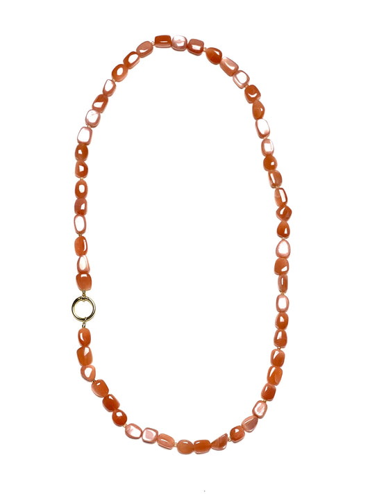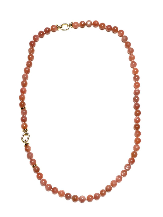 8mm Round Peach Moonstone Necklace